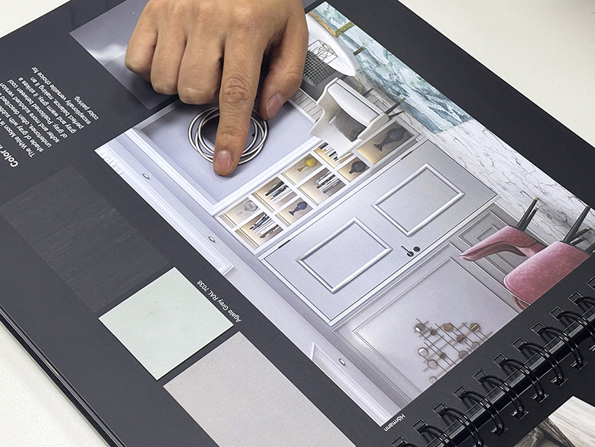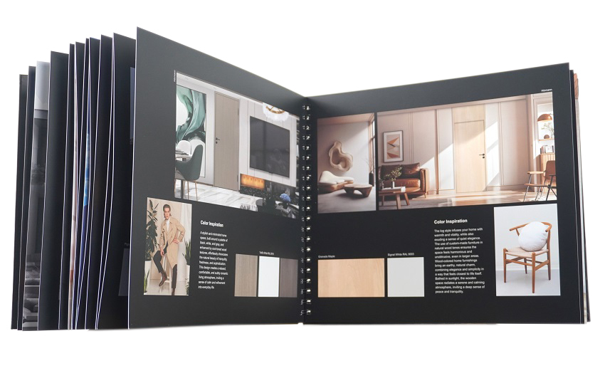 understand the color and design trends of this season through the inspiration pictures and mood board; select the materials and designs you need from the provided materials; conduct matching and comparison in your design scheme or various material selection scenarios.